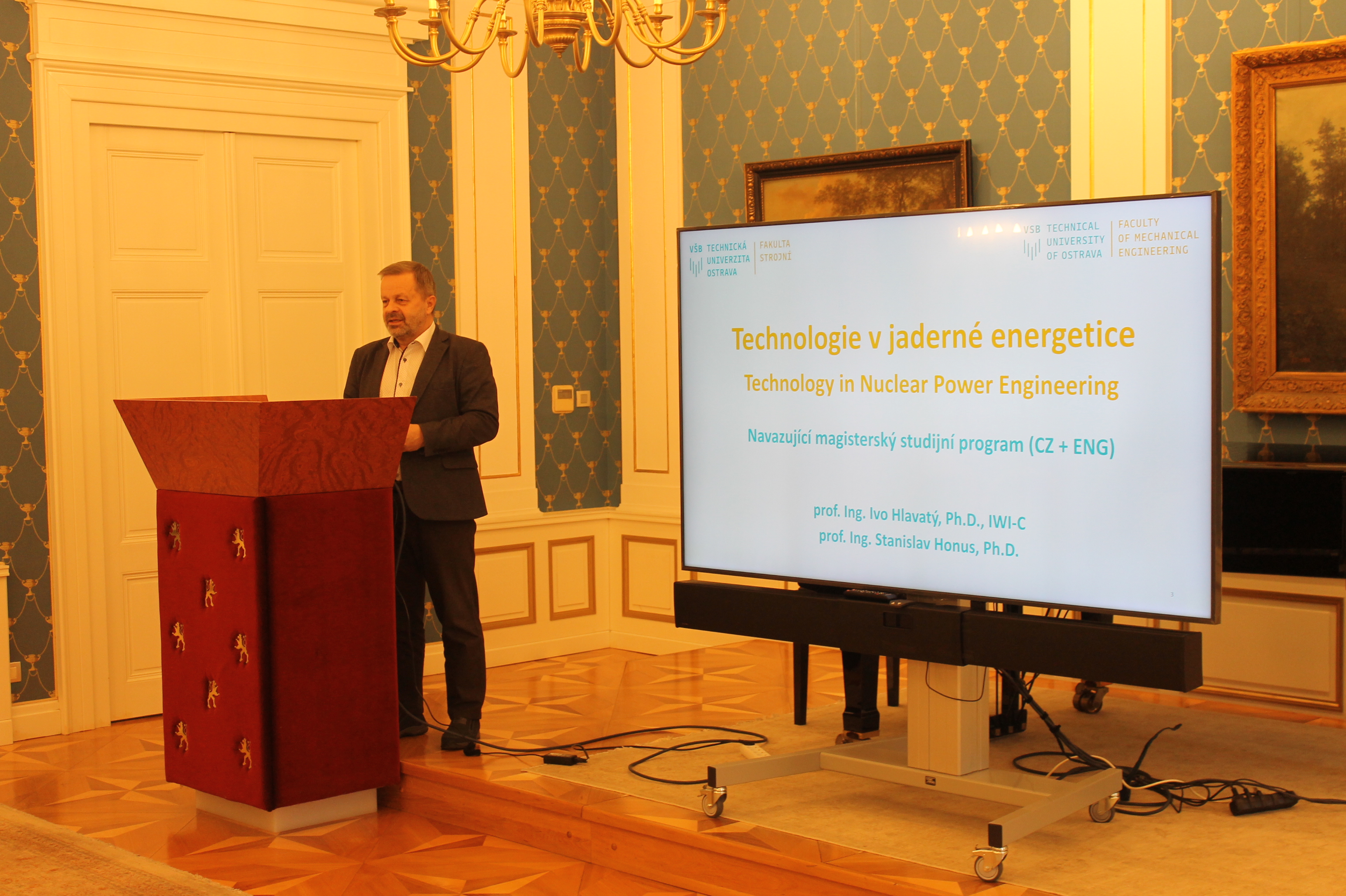 Na workshopu pod názvem „Vodíkové technologie“ vystoupili (zleva): Ing. Jan Světlík, prezident NSK a prof. Ing. Stanislav Mišák, Ph.D., ředitel CEET.